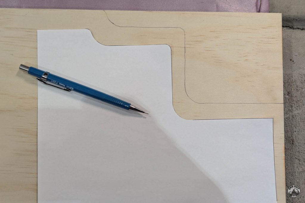 The D-Pillar can be scribed, or you can use the Bed Platform D-Pillar Trim Template we made. The contour of the D-Pillar is transferred to the plywood and cut with a jigsaw: