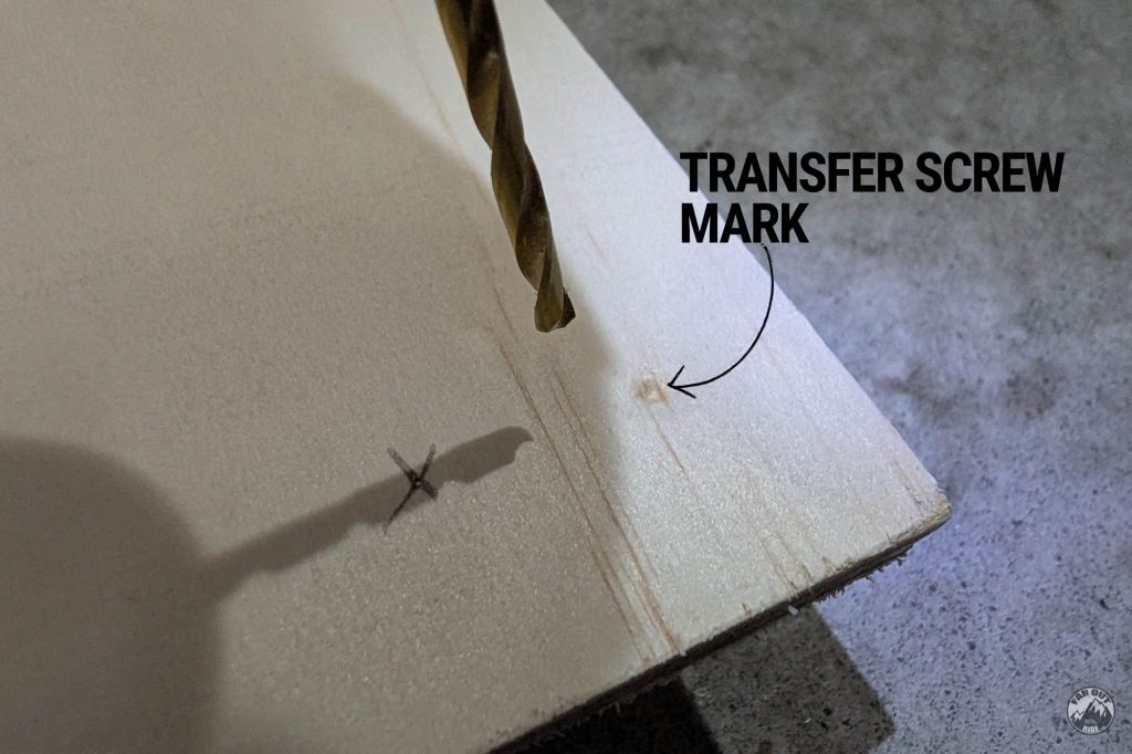 Press hard (or tap) on top of each t-nut to punch the exact location of the hole center. Use a 1/8″ drill bit to pilot the 4 holes. The punch prevents the drill bit from roaming on the surface (very accurate):