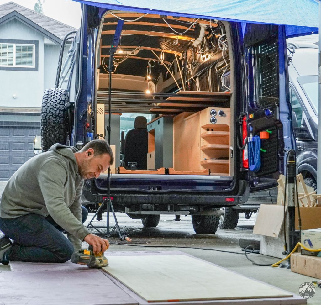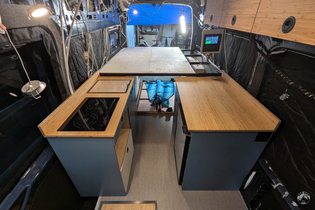 1. Hey! Maybe I’m missing something, but what’s the value of building this platform? It looks like you’ve got cabinets for the electric system, water system, kitchen, and fridge that are all pretty much the same height as the bed will be. Wouldn’t it be easier to just mount some beams across all 4 of those cabinets and then plywood on top? You’ve avoid having to build the uprights and north-south beams which look like the most expensive and complicated part. Or is there some additional functionality that’s baked into the master plan haha. Curious to hear your thought!