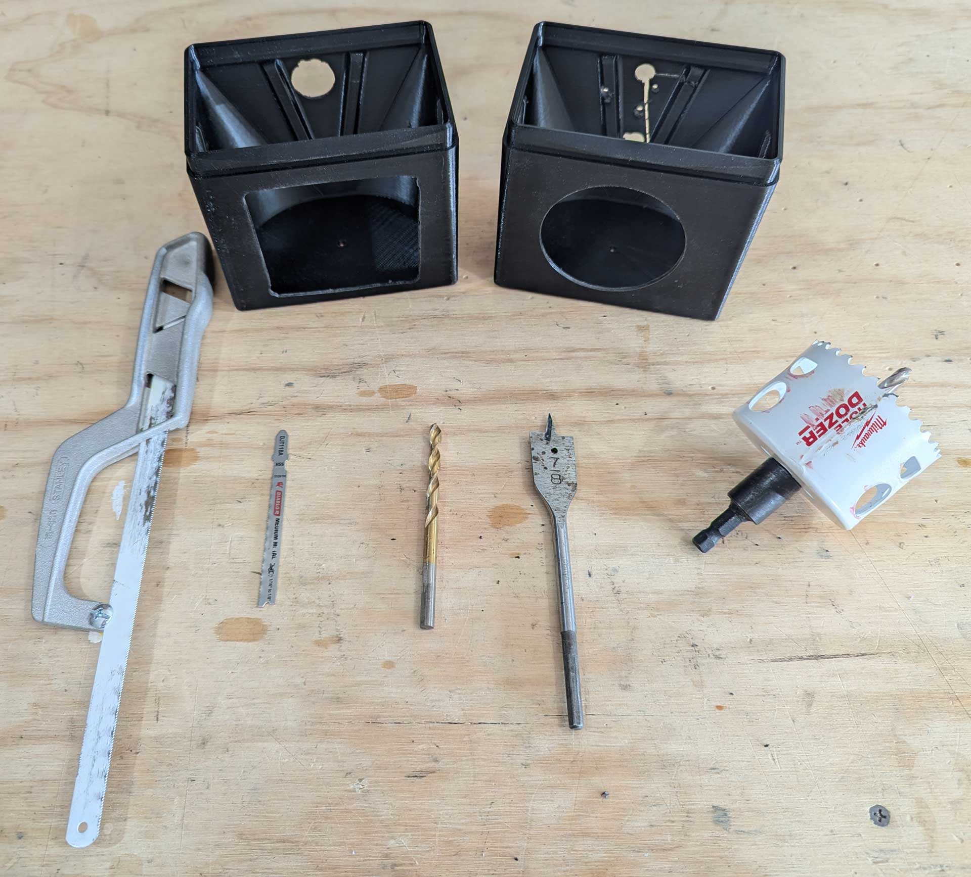 - Drill Bit. Go incrementally for holes larger than 1/4″ (use several bits or use spade drill bit instead).