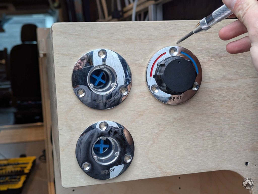 Like most, we’ll use Aquor inlet & outlet. We’re also using Aquor’s mixing valve to control the shower/bike-wash. Here are the hole diameters for the Aquor’s fittings: