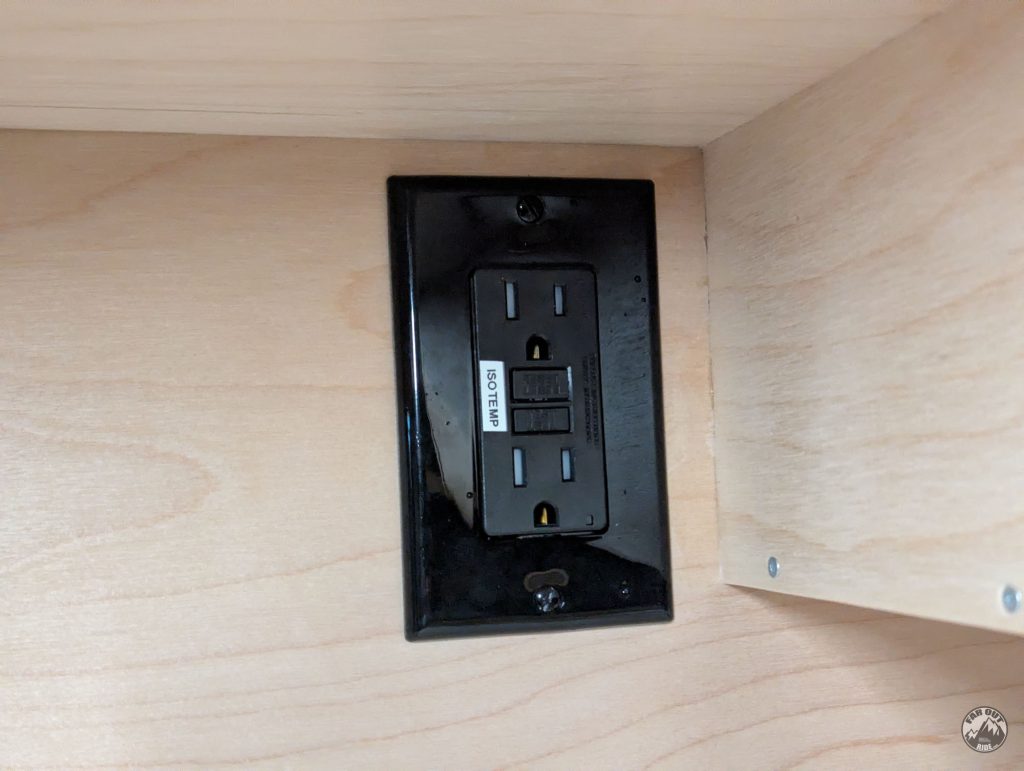 I pre-wired the 120V outlet and connected it to the EcoFlow Power Kit (as documented in faroutride.com/ecoflow-install). I can now just bring it inside the cabinet and screw it in place: