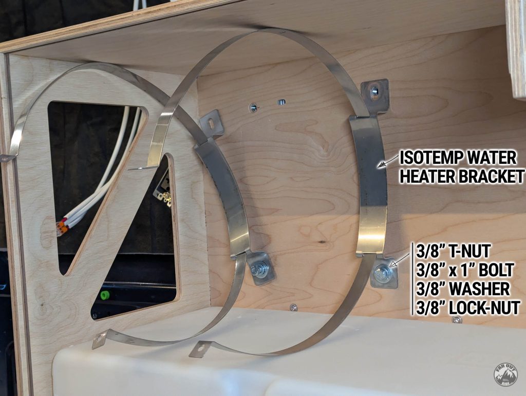 The Isotemp Spa Water Heater brackets can be mounted first. I used the following hardware: