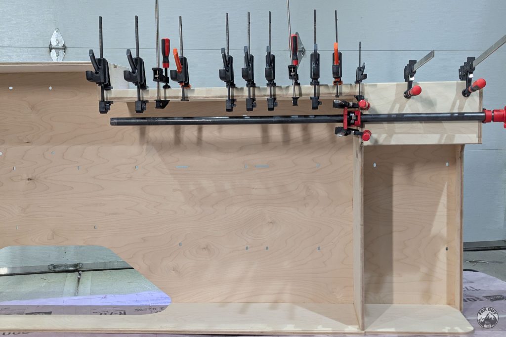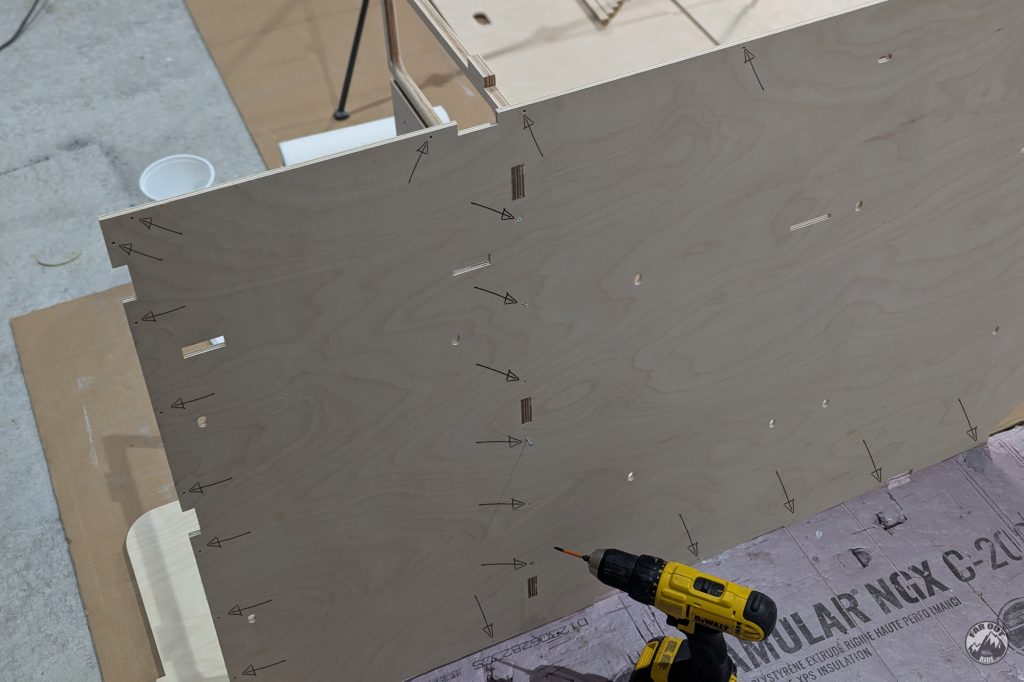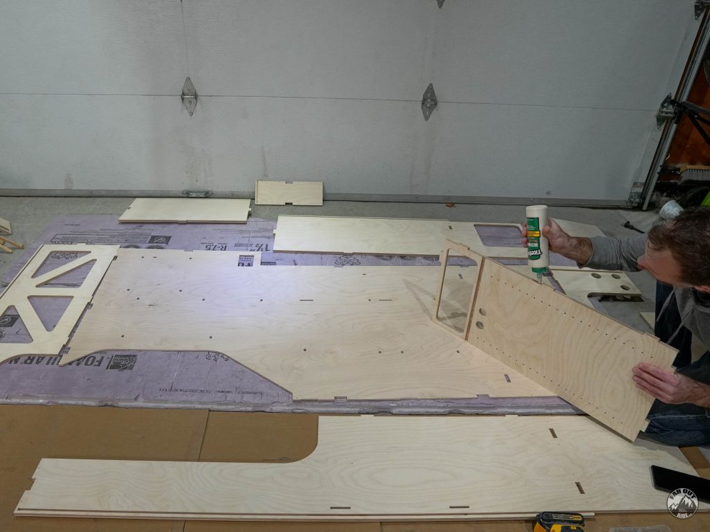 I’ve got all my parts cut on the CNC the day prior (see this YouTube video if interested) and sanded with an orbital sander (220 grit). We’re ready to assemble!